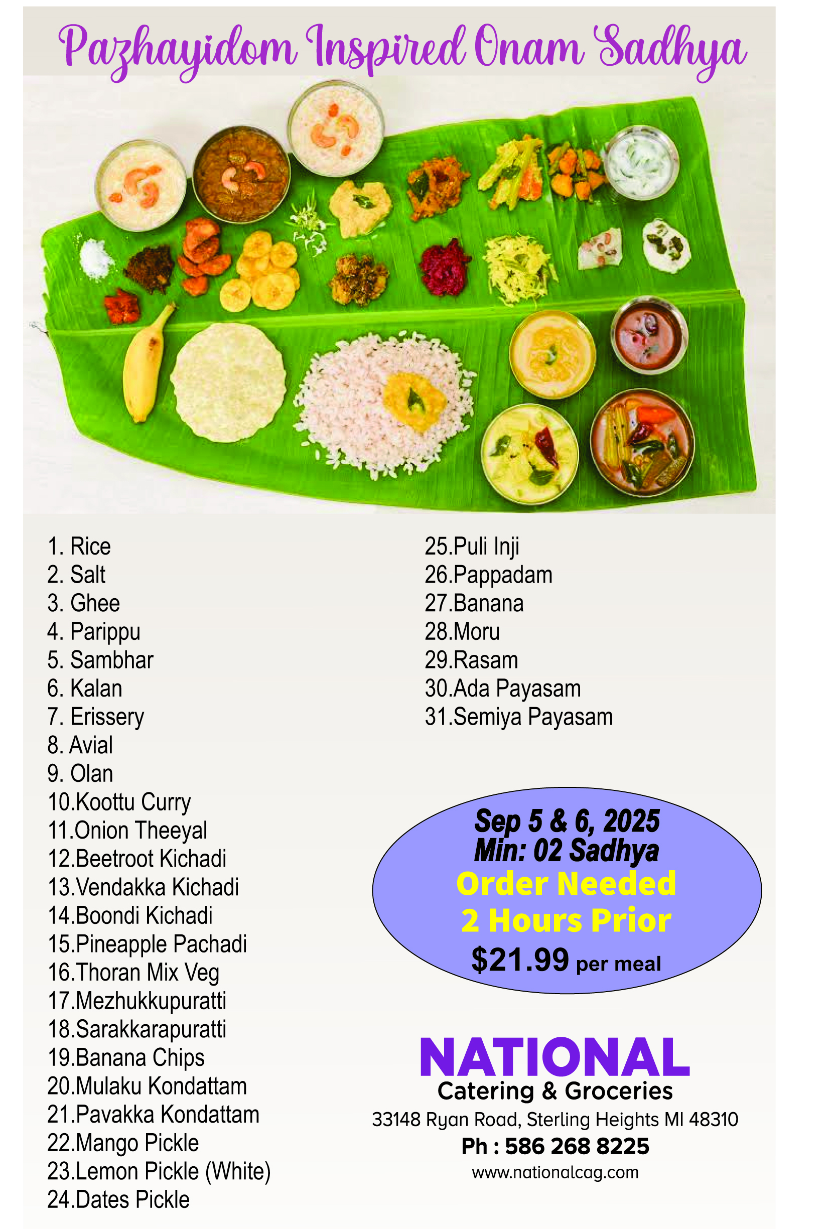 started in 1993 and since then have been serving the Indian Community. National Groceries and Catering is located at a central location in Sterling Heights at the intersection of 14 mile and Ryan Road is a one stop shopping experience for Indian Groceries, frozen food, a variety of fish as well as delicious and mouth watering freshly prepared Kerala Dishes.